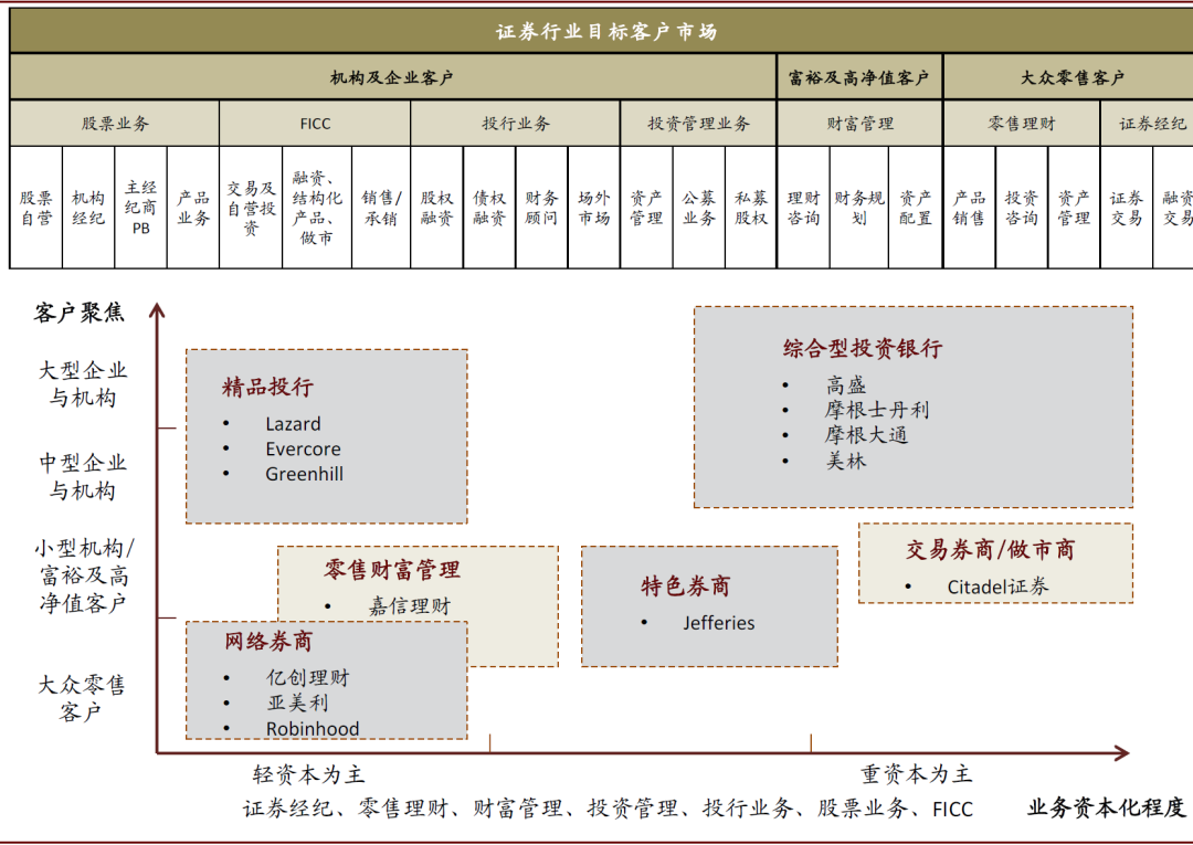 图表: 美国证券及投资银行业围绕不同客户需求具备差异化的业务形态