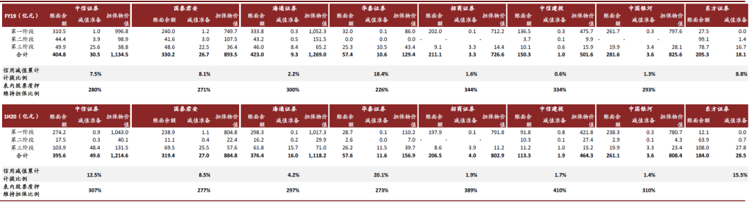 图表: 主要大券商股票质押信用减值准备明细及累计计提比例
