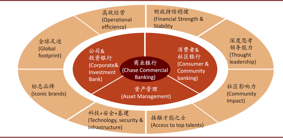 图表: 摩根大通以商行为中心、四大业务板块协同发展