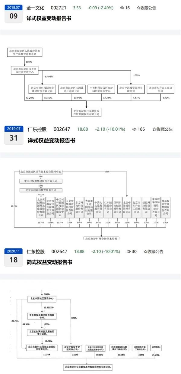 切回事件主线,2019年7月31日,停牌多日的仁东控股发布公告,海科金集团将通过“受让表决权+一致行动人”的方式,取得上市公司28.94%股权的表决权,实际控制人由霍东变更为北京海淀区国资委。