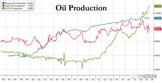 随着2015年,美国、俄罗斯原油产量增加,OPEC+减产稳价,失灵了。毕竟,两家600—800万桶/天的富余产能,秒杀OPEC不到400万桶/天的富余产能。