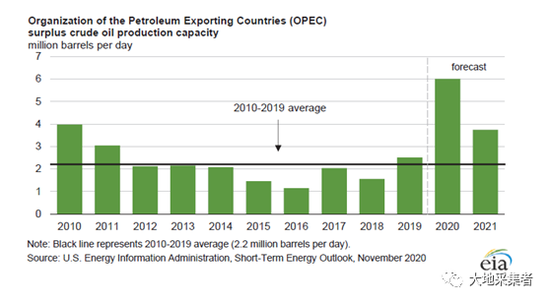 2020年12月3日,OPEC与俄罗斯(OPEC+)就2021年的减产计划,达成协议。根据协议,自2021年1月开始,OPEC+减产量为720万桶/天,较原计划减产量770万桶/天,增加50万桶/天。不过,OPEC+每月召开会议,评估市场影响,再调整减产量。