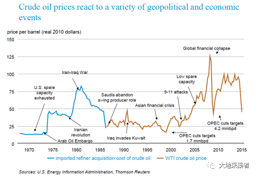 在2015年以前,OPEC可以通过调整原油供应量,影响市场的原油价格。例如,OPEC减产170万桶/天,原油价格开始从25美金/桶反弹;第二次,OPEC减产420万桶/天,原油价格再次突破50美金/桶。可以这样说吧,每次OPEC的减产会议,都能提振原油价格。