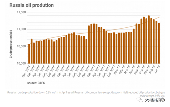 此外,由于2018年俄能源体系创造了俄国内生产总值的约25%,贡献了俄联邦财政收入的约45%。在经济下行期,俄罗斯肯定不会大幅度的减少原油产量的。