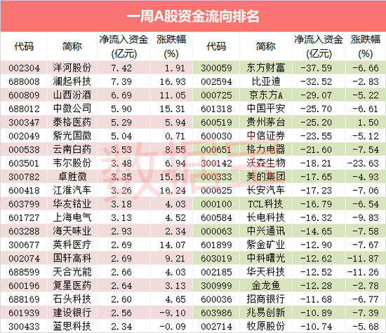 21股遭主力资金净卖出超10亿元,比上周大幅增加。东方财富、比亚迪、京东方A、中国平安、贵州茅台净流出额排在前五位,东方财富净流出金额37.59亿元居首,该股本周累计下跌6.66%。