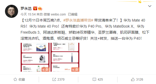 果不其然,11日下午,罗永浩又在微博放出了新的直播带货清单。
