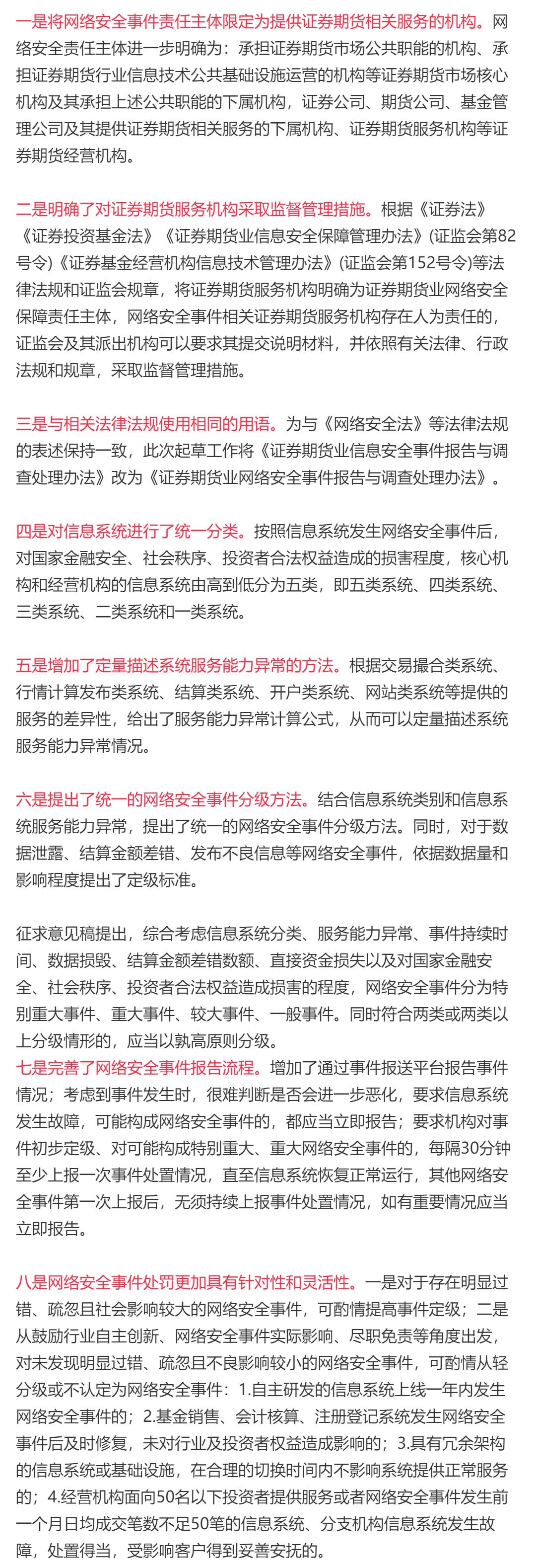 据证监会11日消息,证监会发布《证券期货业网络安全事件报告与调查处理办法(征求意见稿)》,对网络安全事件责任主体限定、网络安全事件分级方法等内容进行修订。