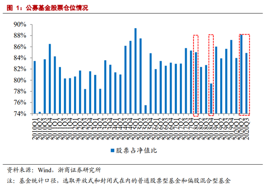 数据上看,一则,今年1月1日至7月12日以来涨幅居前100的公司,涨幅中位数为199%,但7月13日以来,回调中位数为25%;二则,从仓位水平来看,截至今年9月30日,包括开放式和封闭式在内的普通股票型基金和偏股混合型基金的股票总仓位为84.88%,较2020Q2下降3.28%。