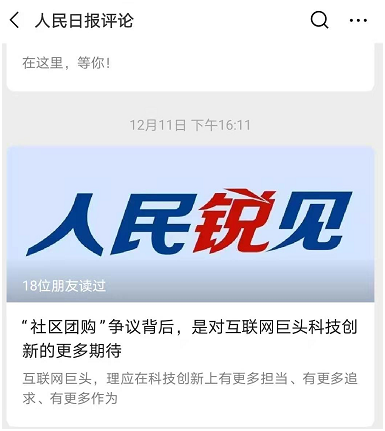 人民日报评论:“社区团购”争议背后,是对互联网巨头科技创新的更多期待