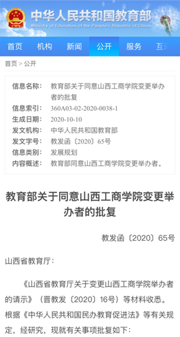 据艾德证券期货了解,通才教育位于山西省太原市,旗下有一所民办大学山西工商学院。2011年,山西工商学院获教育部批准为山西第一所民办本科学院,今年10月,教育部同意山西工商学院举办者由“牛三平”变更为“山西通才教育科技有限公司”。