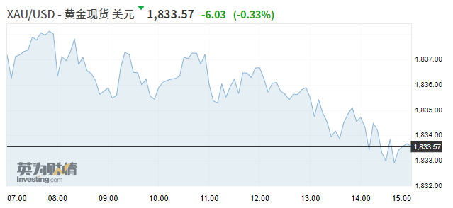亚洲时段,现货黄金小幅下跌,现报1833.57美元/盎司,跌幅0.33%。