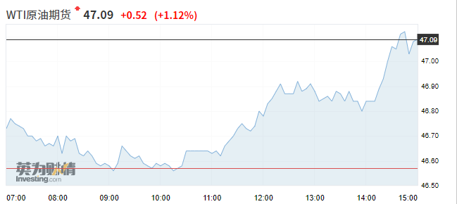 亚洲时段,国际原油走高,WTI原油期货上涨1.32%,报47.09美元/桶,接近3月5日以来阶段高位附近。