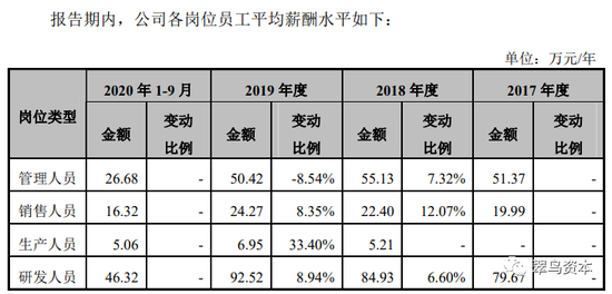 招股书披露:2019年度,公司管理人员平均薪酬较2018年度略有下降,主要是随着公司不断发展以及2018年末岳阳工厂开展试运行,公司招聘了较多的专业岗管理人员和工厂管理人员等中层、基层员工,且岳阳当地薪酬水平较北京等地区略低,从而拉低了整体的管理人员平均薪酬。
