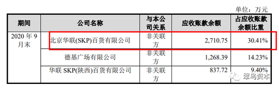 应收账款主要债务人中,华联SKP一直登榜“头名”:2017年-2020年9月30日,其应收账款余额占公司比重分别为56.3%、26.55%、16.49%、30.41%。