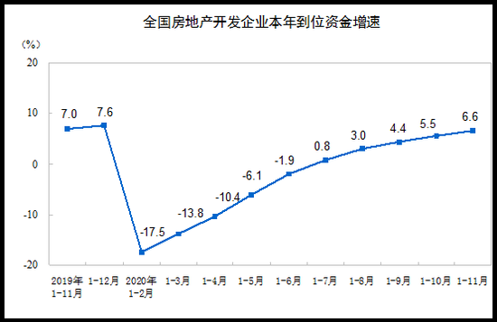 房地产开发投资方面,1-11月份,全国房地产开发投资129492亿元,同比增长6.8%,增速比1-10月份提高0.5个百分点。其中,住宅投资95837亿元,增长7.4%,增速提高0.4个百分点。