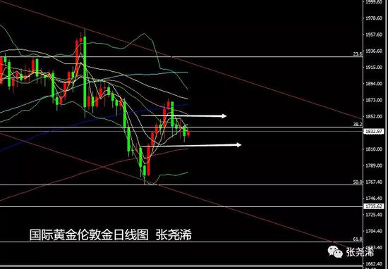 日线级别:金价昨日跌破38.2%回撤线下方,今日则由支撑转为阻力,指标上,KDJ死叉保持向下,MACD多头动能在不断减弱,暗示行情仍偏下行。但上方也有反弹需求,继续先震荡为主行事,如有变化再以张尧浠实仓指导信息为主。
