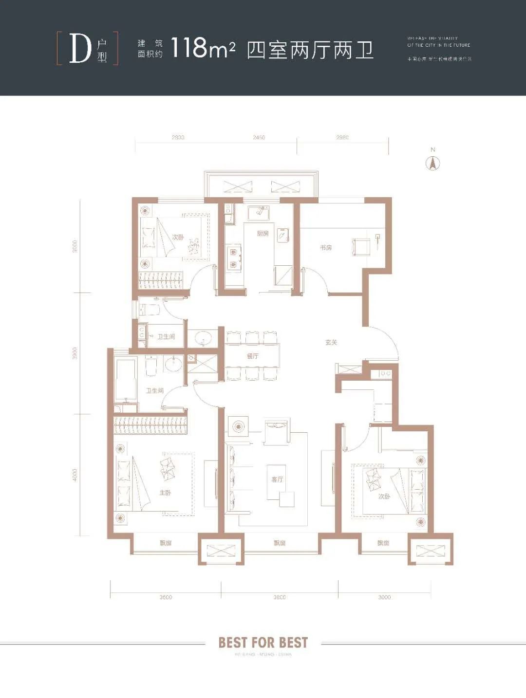 既然说到全盘神户型,除了上述提到的两居和三居的户型,金悦郡打造的118平米的四居,可以说是难得一见,在120平米以下构建舒适四居的产品。