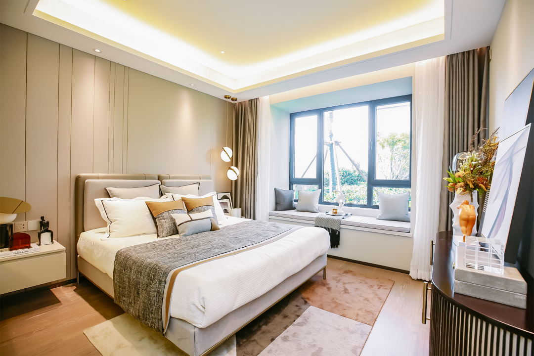 更大的惊喜是在87平米的三居边户户型中,实现三面采光的同时,金悦郡打造了270度的L型观景飘窗,实现了约7.3米的视觉尺度。值得一提的是,相比于目前市面上可以看到的转角飘窗的设计,金悦郡进行了设计优化,使用上下大梁代替了承重柱,更好的实现了观景视野与视觉感受。