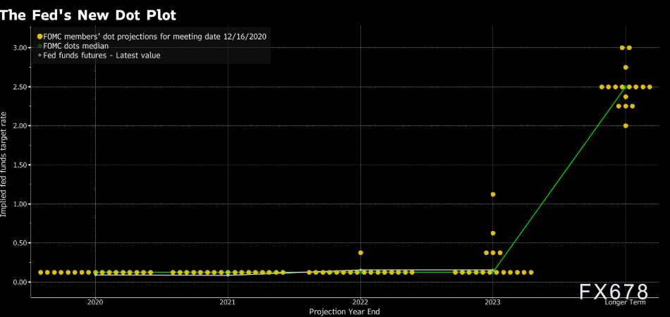 点阵图:利率将维持在接近零的水平直到2023年底;