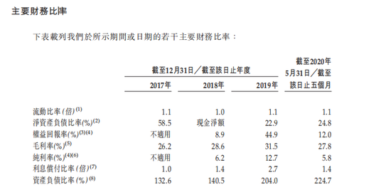 值得警惕的是,三巽控股的资产负债率持续攀升。根照招股书,2017年、2018年,三巽控股的资产负债率分别为132.6%、140.5%,截至2020年5月31日,三巽控股资产负债率由2019年末的204.0%显著增至224.7%。