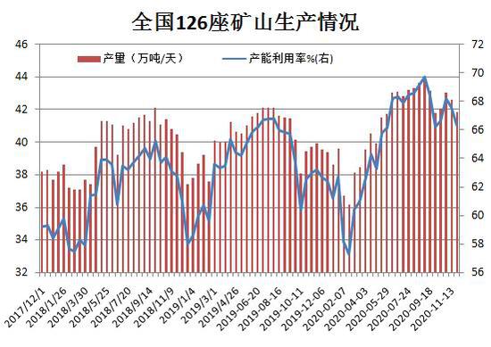 11月份,全国范围内样本126座矿山产能利用率小幅回落,但整体仍维持在较高水平,截止11月27日国内矿山产能利用率为66.37%,9月底为67.57%,其中规模在30万吨以上大型矿山产能利用率为72.88%;规模在10-30万吨之间的中型矿山产能利用率为38.45%;规模在10万吨以下小型矿山产能利用率为21.47%。从矿山规模来看,11月份大型及小型矿山产能利用率均出现小幅回调。