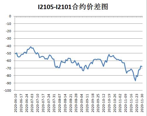 跨期套利:11月30日I2105与I2101合约价差为-67.5。从供需环境分析,近月合约仍将强于远月合约。操作上建议,当两者价差在-58附近,考虑空I2105多I2101,价差为-50止损,目标-80。