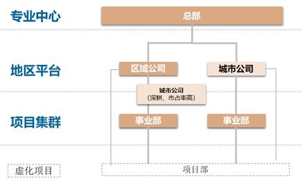 整体形成集团-区域-事业部-虚拟项目部的2.5级管控。