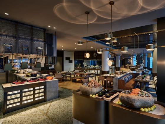 现代感绝佳的“源”全日餐厅,拥有室内及室外餐位。餐厅拥有多个互动式开放厨房,将根据不同季节、全天呈奉来自全球的丰富时令菜肴和经典美食。而酒店自助餐亦在此享用。此外,餐厅设有室内儿童玩乐区及室外露台,宾客与孩子们在全日餐厅更好的享受美食带来的欢乐的同时亦可将湖泊、悬崖和瀑布美景尽收眼底。