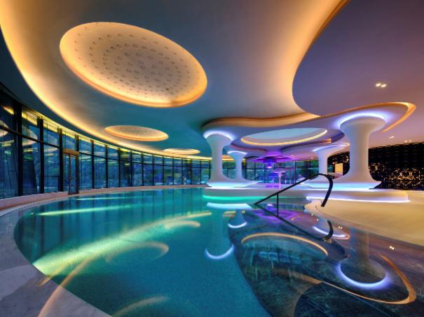 酒店拥有梦幻般设计、造型独特的室内游泳池。宾客在畅游之余,透过宽敞的落地窗,观赏飞流直下的瀑布景观,将会别有一番惬意,感悟自然奇境之美。