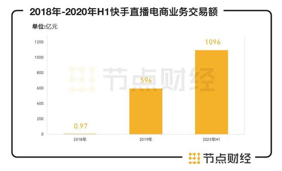 根据快手招股书,平台在2018年和2019年促成电商交易额分别为0.97亿元、596亿元,2020年上半年更是达到了1096亿元。2020年9月,快手对外宣布平台8月份的订单量突破5亿单,过去12个月的订单量仅次于淘宝天猫、京东、拼多多,成为了电商行业新兴的第四极。