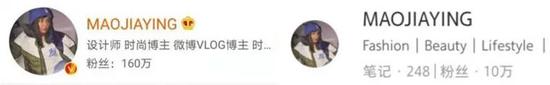 图3 MAOJIAYING新浪微博和小红书粉丝数量截图
