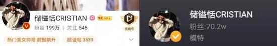 图2 储镒恬CRISTIAN新浪微博和抖音 粉丝数量截图
