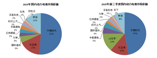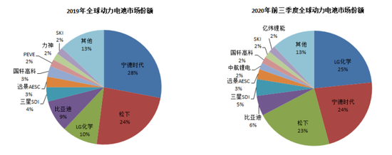 比如2020年LG化学凭借国产特斯拉Model3的配套,市占率达到14%,逼近比亚迪。拿数据说话,2019年留给二线整体的市场空间有32%,2020年前三季度则只有25%了。