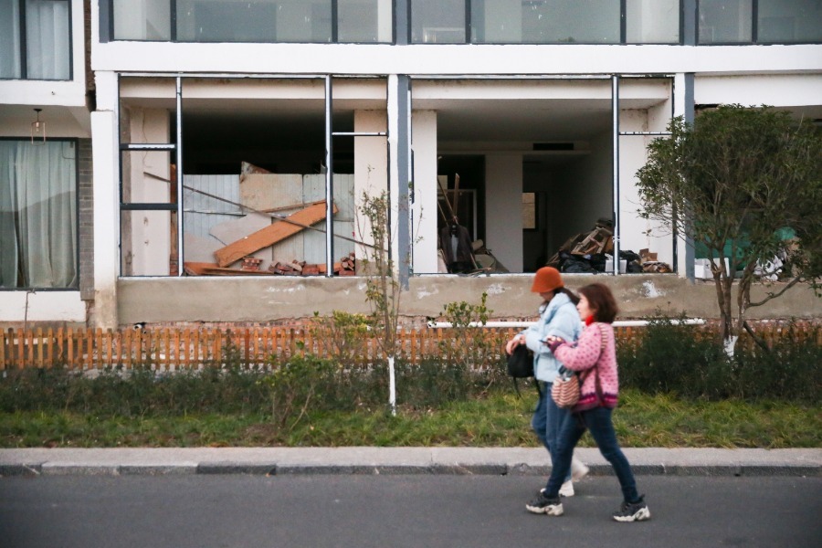 12月11日,大理才村,游客经过被拆除部分建筑的客栈。(中国日报记者 武晓慧 摄)