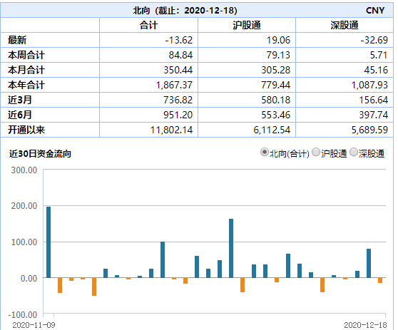 从北向资金流向看,本周其对沪市明显更加偏爱:截至18日收盘,北向资金本周累计净流入84.84亿元,其中沪股通资金净流入79.13亿元,深股通资金净流入5.71亿元。