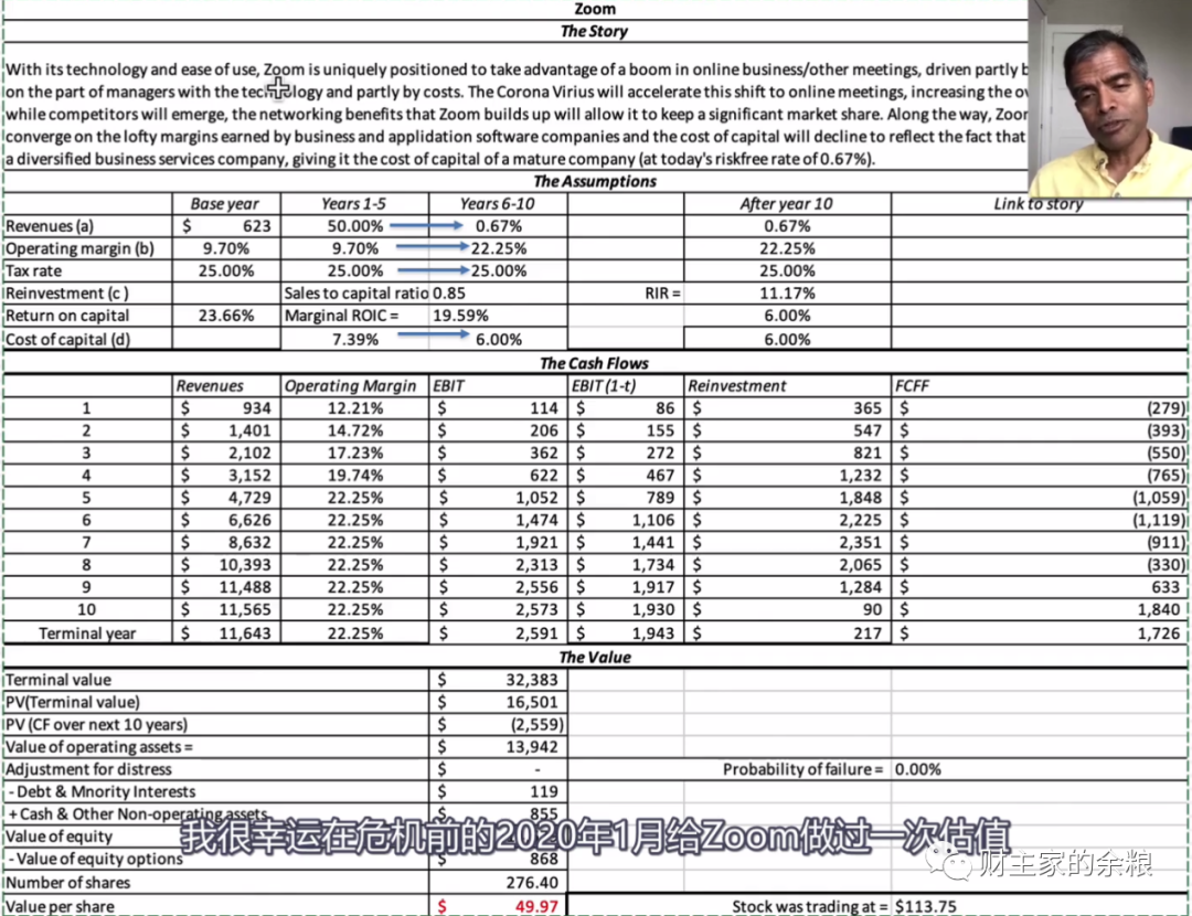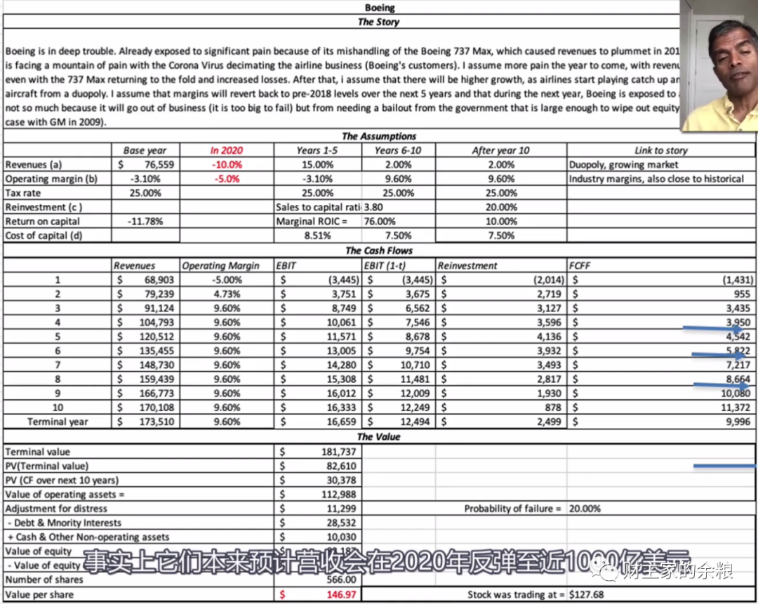 所以,他写了一本书,就叫做《故事与估值》,我看到的这个视频,就是他针对2020年3月份危机前后美股的表现,应用故事-估值的方式,教大家买入或卖出股票的估算模型。