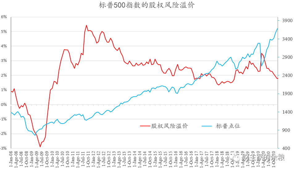 我们再来对照现实,截止12月15日:标普500指数的点位是3695点;市盈率为37.2,股权风险溢价率为1.8%。