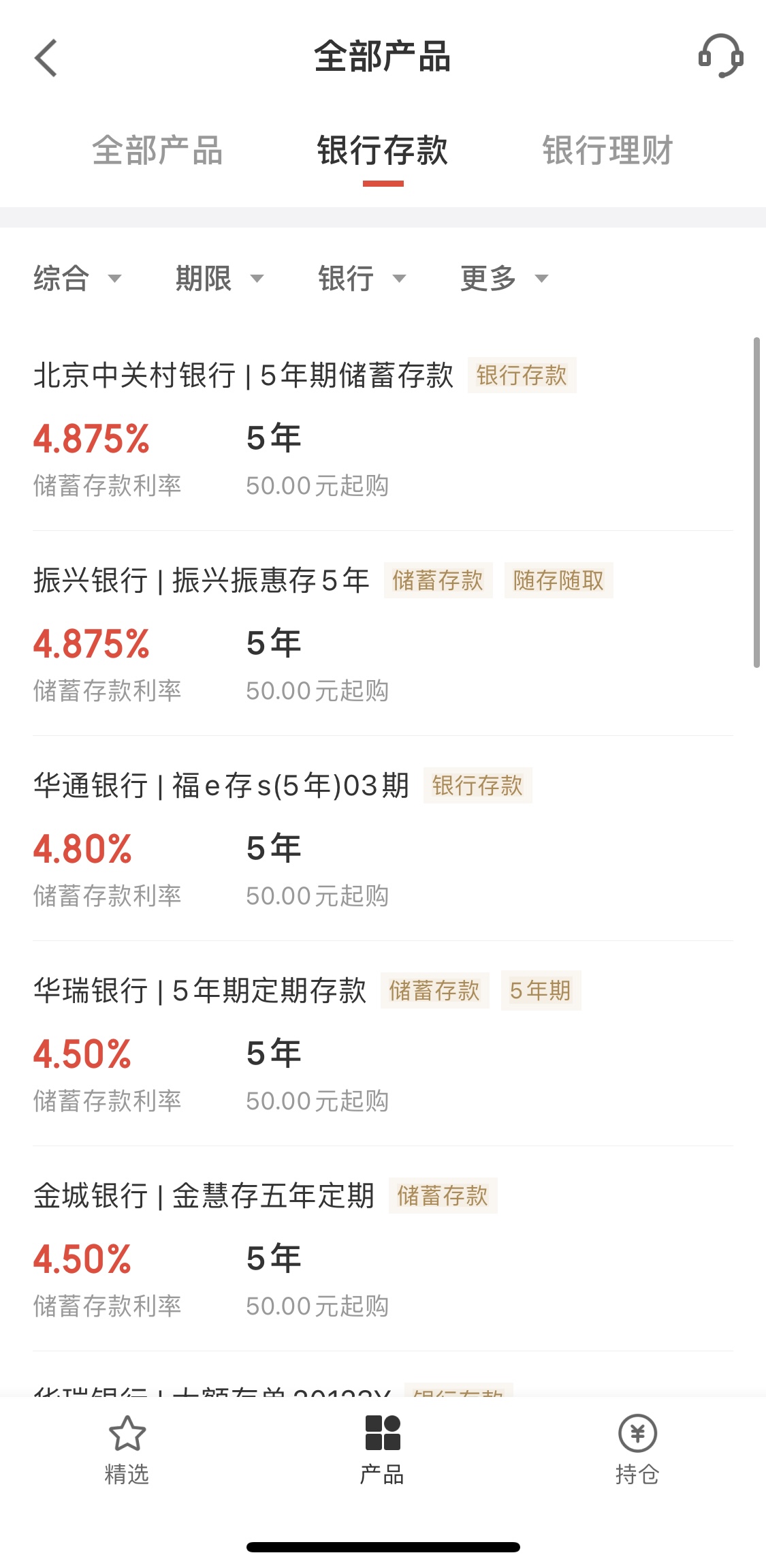 根据记者统计,目前京东金融APP中在售的银行存款产品为34只,涉及银行包括振兴银行、金城银行、华瑞银行等,产品期限从1个月到5年不等,起投金额多为50元;度小满金融APP在售的银行存款产品为22只,涉及银行包括中关村银行、营口沿海银行、振兴银行等,产品期限也是从1个月到5年不等。
