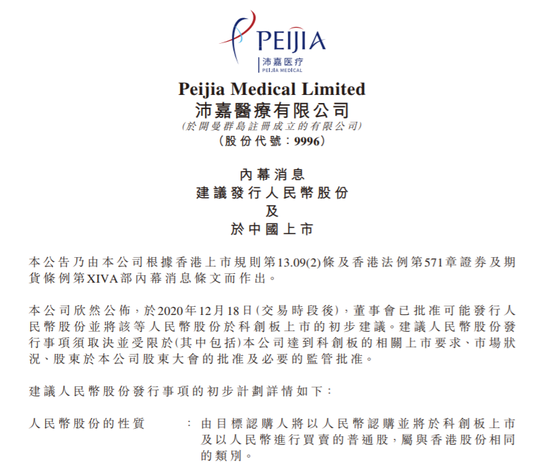 12月21日消息,沛嘉医疗-B(09996)发布公告,于2020年12月18日,董事会已批准可能发行人民币股份并将该等人民币股份于科创板上市的初步建议。建议人民币股份发行事项须取决并受限于本公司达到科创板的相关上市要求、市场状况、股东于公司股东大会的批准及必要的监管批准。