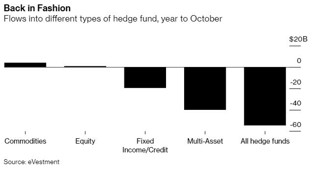 而现在,这一趋势正开始再度逆转。对冲基金行业今年整体出现了资金外流,但专注于大宗商品的对冲基金成功筹集到了资金。根据eVestment的数据,截至今年10月,逾40亿美元资金流入商品类对冲基金,而整个对冲基金市场则录得550亿美元的资金流出额。