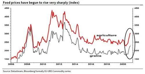 我们最近可能忽视了粮农组织的粮食价格指数(这一指数衡量谷物、油料、乳制品、肉类和糖的价格)。这一指数已经连续六个月上升,并创下六年来新高。