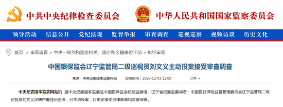 近日,中央纪委国家监委网站发布消息,中国证监会重庆监管局原党委书记、局长毛毕华接受审查调查。就在毛毕华被查的前一天,中国银保监会辽宁监管局二级巡视员刘文义主动投案,接受纪律审查和监察调查。