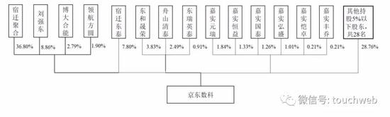 IPO前,京东集团通过其境内设立的外商独资企业江苏汇吉协议控制内资企业宿迁聚合,并通过宿迁聚合间接持有公司36.80%的股份,为最大股东。