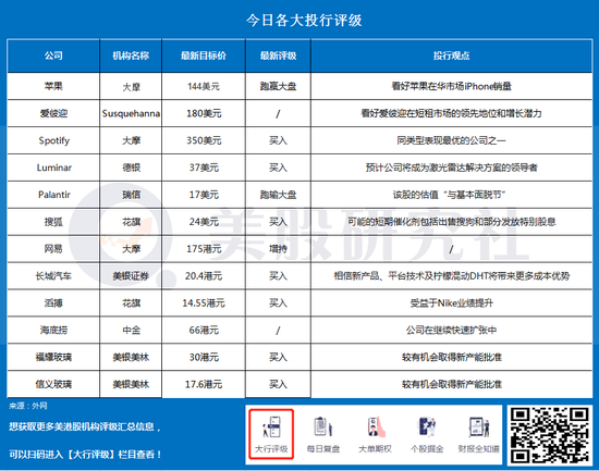 【今日机构评级汇总】大摩看好苹果手机在华销量,瑞信看衰Palantir估值与基本面脱节