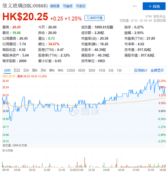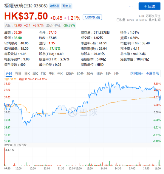 截止港股今日收盘,福耀玻璃股价涨1.21%,报37.5港元;信义玻璃股价涨1.25%,报20.25港元。