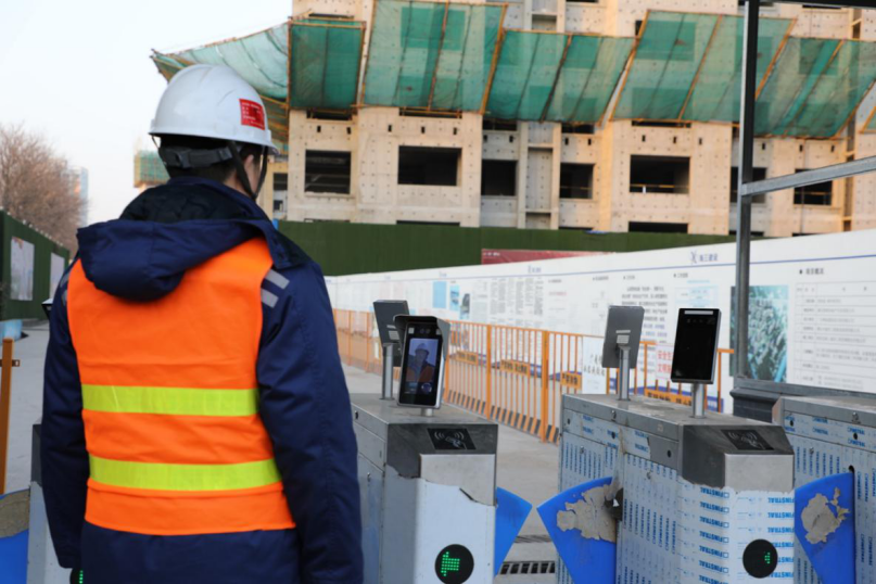 碧桂园雍华府项目工作人员通过智能门禁系统进入工地