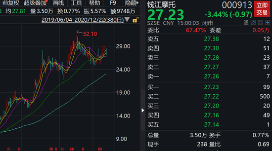 春风动力、钱江摩托等摩托车概念股股价表现强势,Wind数据显示,截至12月22日,春风动力4月1日以来股价涨幅达438.28%,钱江摩托股价涨幅达178.80%。