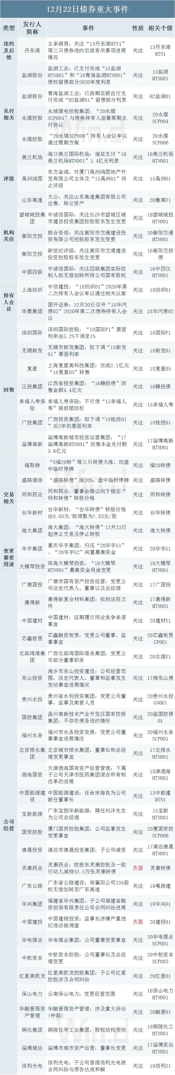 主承销商公告称,“20永煤SCP006”持有人会议审议通过展期方案,同意发行人先行兑付50%本金及全额利息,剩余本金展期270天,展期期间利率保持不变,到期一次性还本付息。“20永煤SCP006”将于12月25日到期,当前余额为10亿元,这已是永煤控股第6只展期债券。此外,“20永煤SCP004”发行人与债券持有人已签署展期兑付协议。