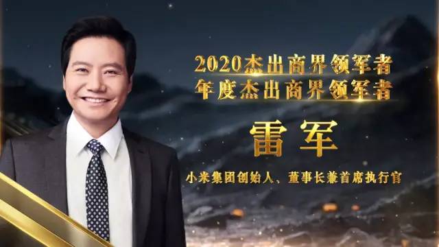 获奖者:雷军 小米集团创始人、董事长兼首席执行官