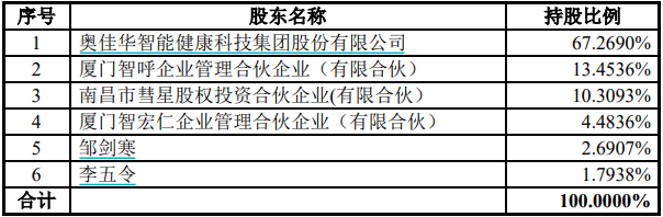 然而,邹剑寒和李五令分别持有上市公司奥佳华20.72%和18.25%股份,二者通过奥佳华对呼博仕还有13.94%和12.28%的间接持股比例。